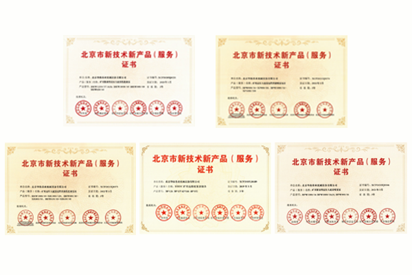 北京市新技术新产品证书 获批产品:矿用高压大流量远程供液乳化液泵站、矿用高压大流量远程供液喷雾泵站